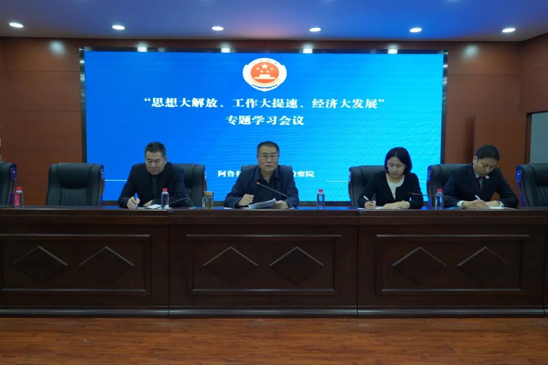 近日,阿鲁科尔沁旗人民检察院召开“思想大解放、工作大提升、经济大发展”专题学习会,院党组书记、检察长鲍杰主持会议并讲话,全院检察人员参加会议。