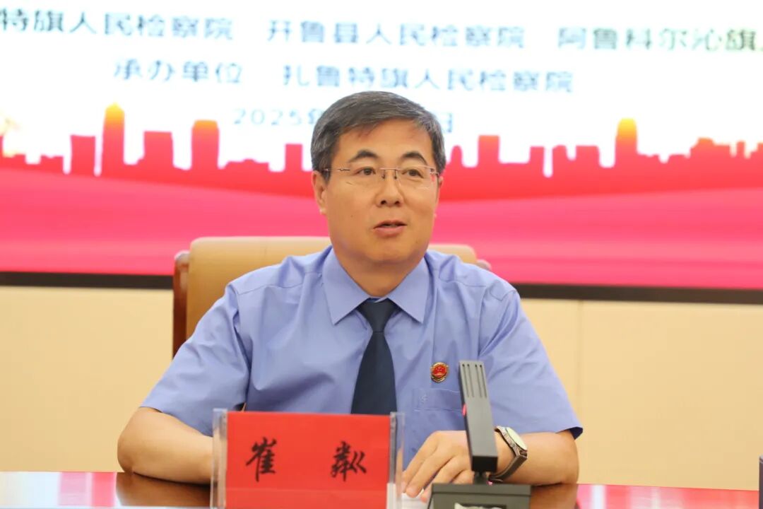 扎鲁特旗旗委常委、副旗长杨会敏在讲话中表示,“三鲁论检”理论研讨会既打破了地域的壁垒,又搭建了这宝贵的交流互建的平台。有利于集中智慧,凝聚共识,有利于促进资源共享、优势互补,有利于激发研究的热情,营造浓厚的学术氛围。通过思想的碰撞和智慧的交流,产生的研讨成果,必将为推动跨区域基层检察工作和经济社会高质量协同发展提供有力的理论支撑。